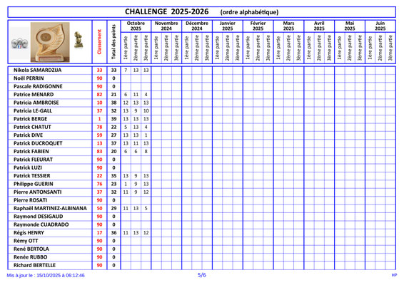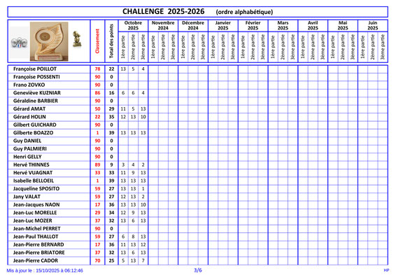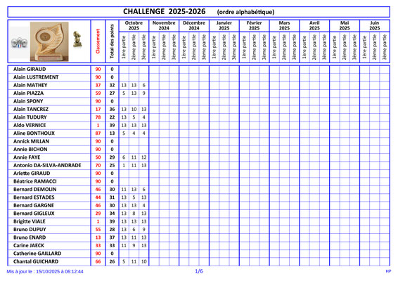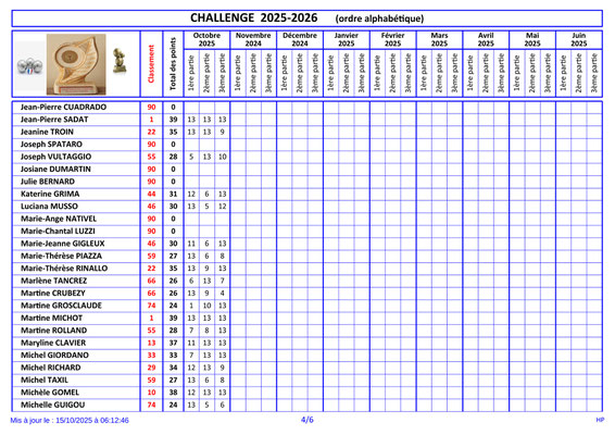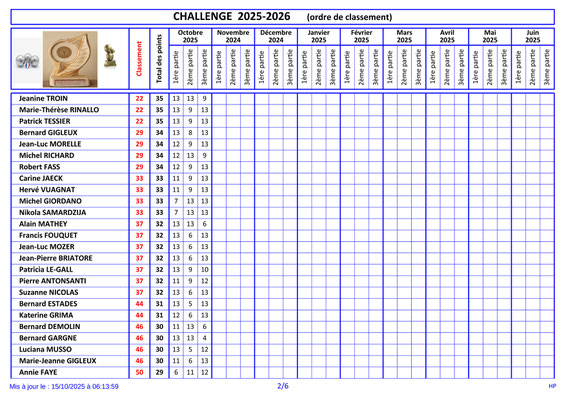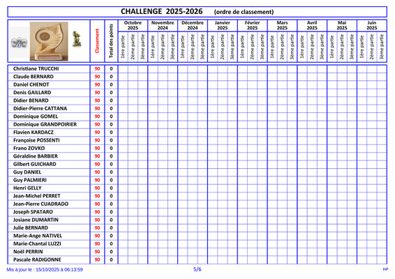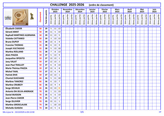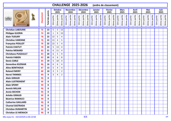 Ci-dessous les tableaux "Classement Challenge 2025/2026"